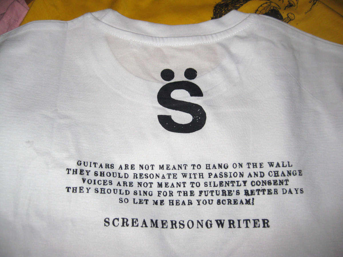ScreamerSongwriter T-shirt | $100.00Awesome hand-printed t-shirt with the original ScreamerSongwriter artwork. Many different colors and will be hand-picked for you. Prepare your body!